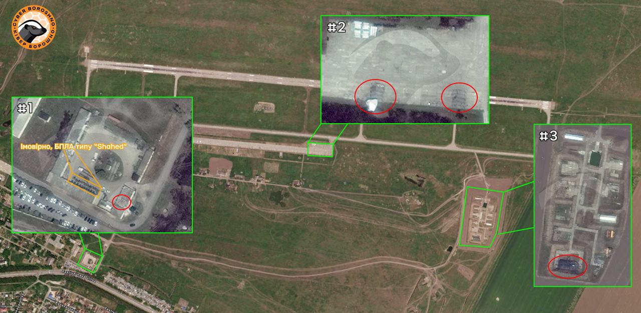 "Результат атаки на аеродром "Приморсько-Ахтарськ" у ніч з 01.08 на 02.08. Було уражено/знищено три будівлі для зберігання БПЛА типу "Shahed"(#1 та #2), на даних ділянках спостерігалась висока активність вантажних машин та самих БПЛА навколо будов. Також критично уражено комплекс зберігання та підготовки авіаційних засобів ураження(#3), – пишуть аналітики та додають: – Крім того, на різних ділянках території аеродрому зафіксовано осередки займання та незвичну активність у зоні одного з пускових майданчиків для БПЛА".