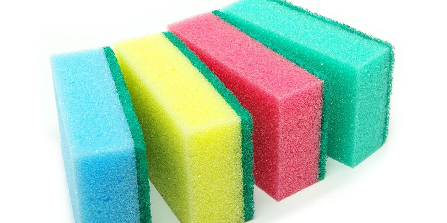 - Візьміть кілька нових кухонних губок та намочіть їх водою.