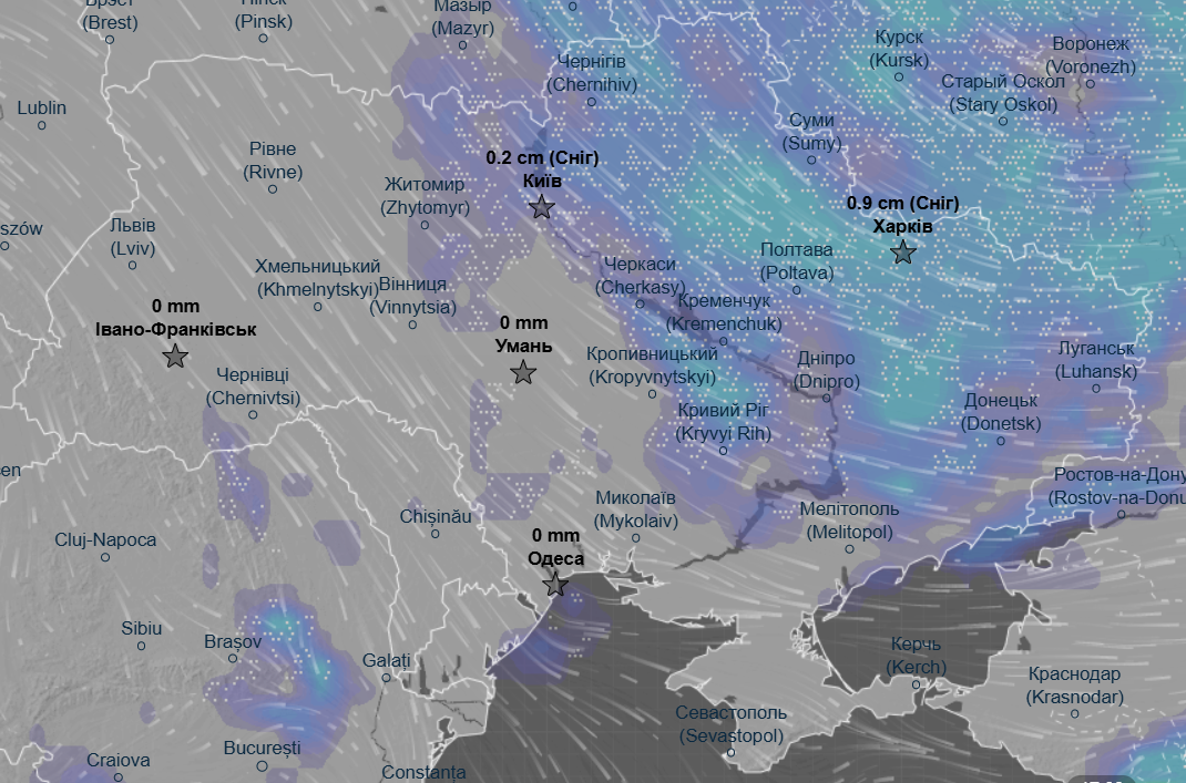 Також впровдовж доби очікуються сильні опади у вигляді снігу на всій східній частині України, а також в частині північних та центральних областей.