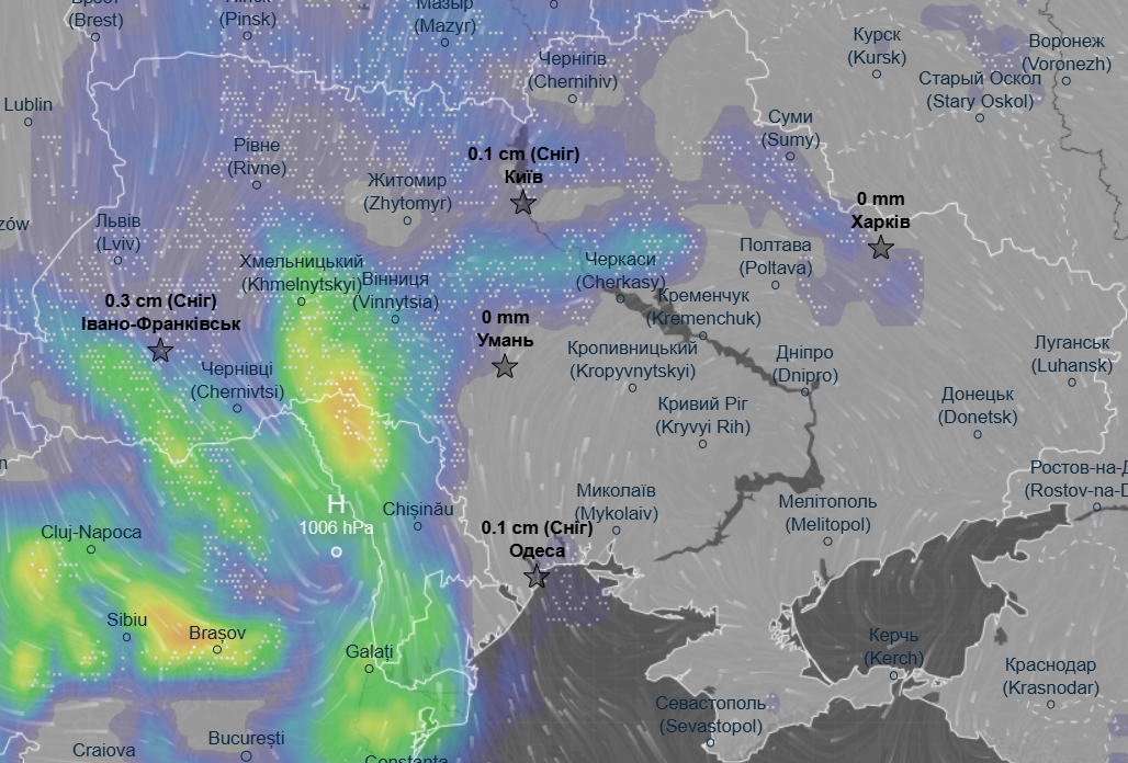 Впродовж доби в Україні очікується до +4...+6 °С вдень, вночі можливі морози в межах 0...-2 °С.