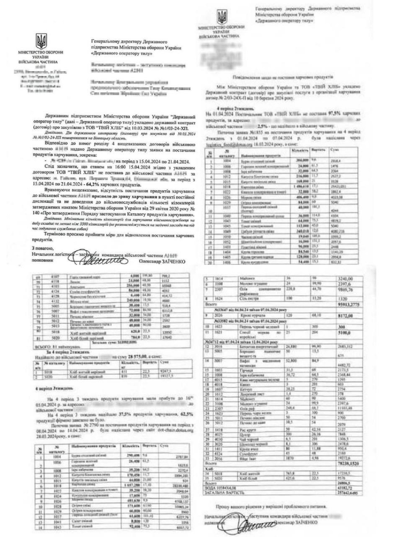 Ще один постачальник ДОТ, ТОВ "Черкаський м'ясокомбінат", нічого не поставив частині полковника Заїченка. В інших частинах, за даними Туки, ситуація така ж сама. Він наводить слова кількох військових:
