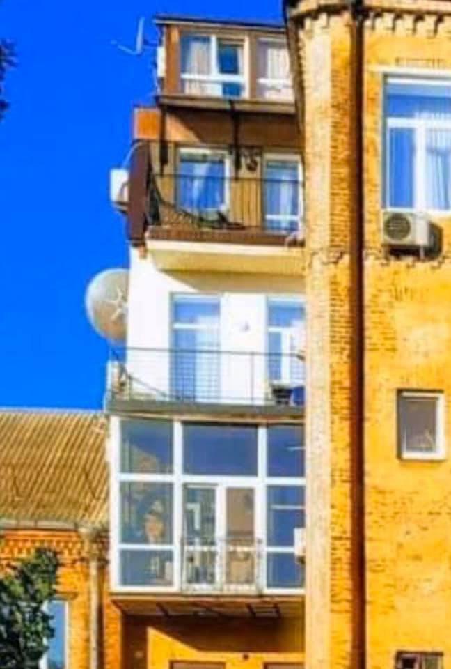 У Києві знову помітили дивну прибудову до одного з житлових багатоповерхових будинків по вулиці Антоновича.