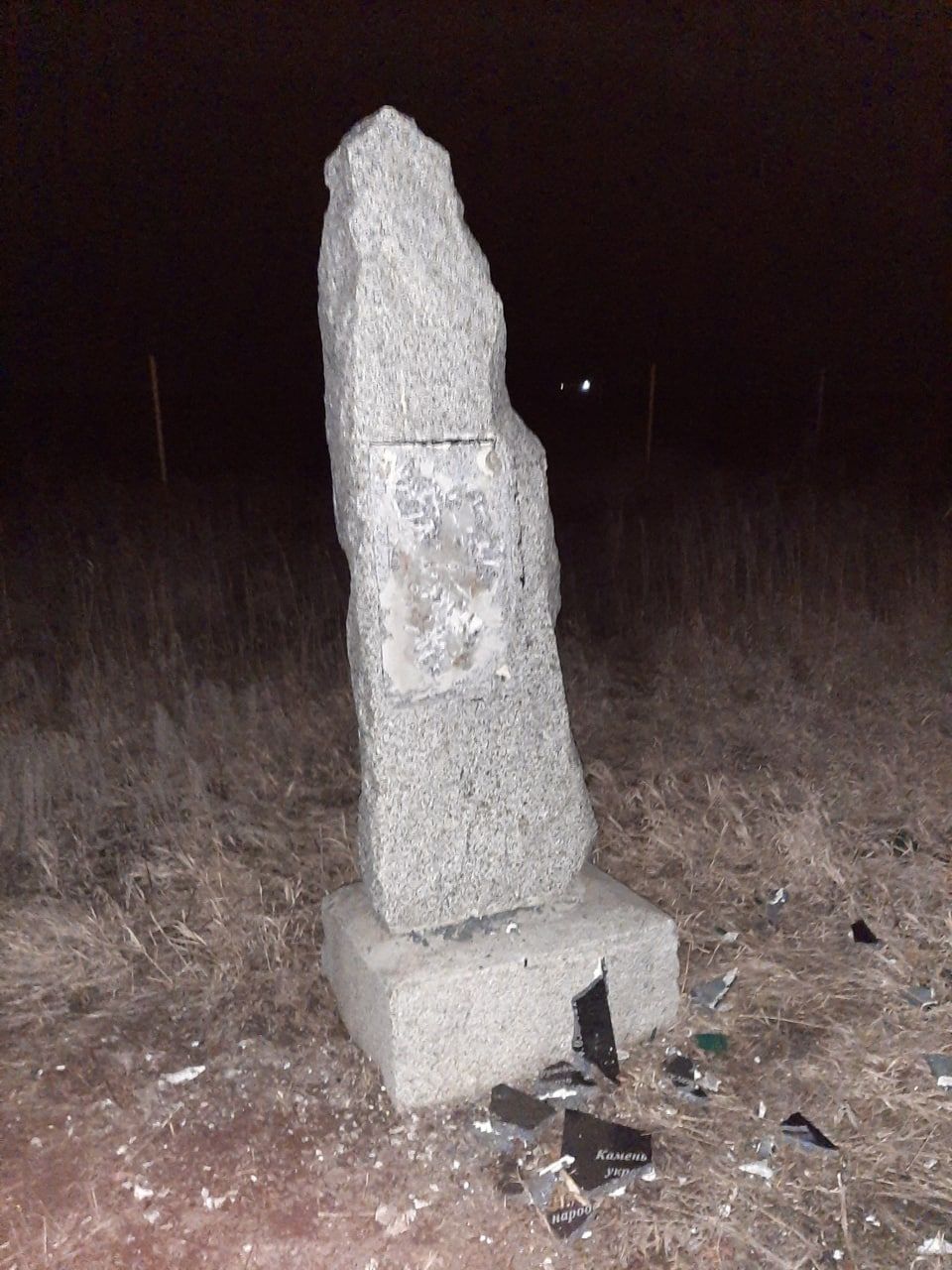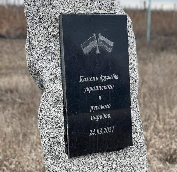 Камінь був встановлений в селі Руська Лозова Дергачівського району. Його після руйнування відновили за ініціативою ОПЗЖ.