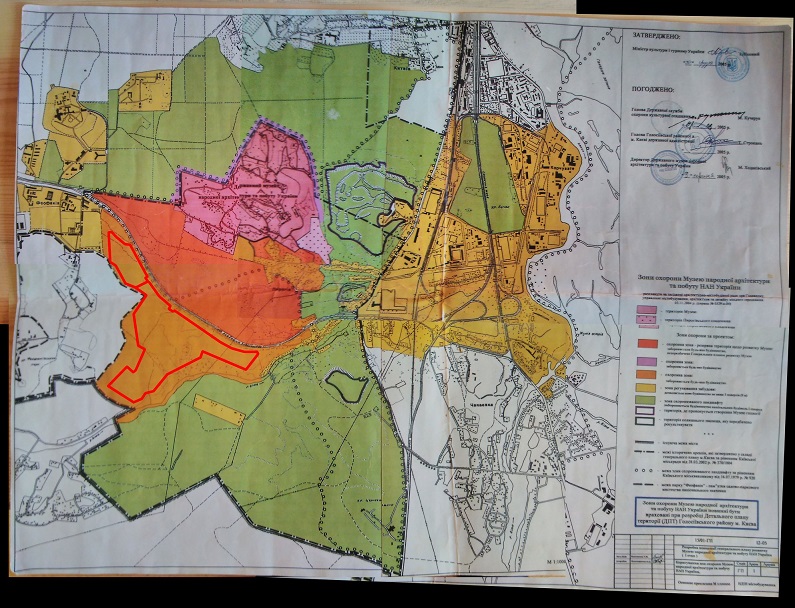 Як свідчить діючий Генеральний план міста Києва, ділянка, на якій проводяться рубки, не тільки охоронна зона музею, вона ще й входить в зону охорони пам'яток культурної спадщини та Південного історичного ареалу столиці.