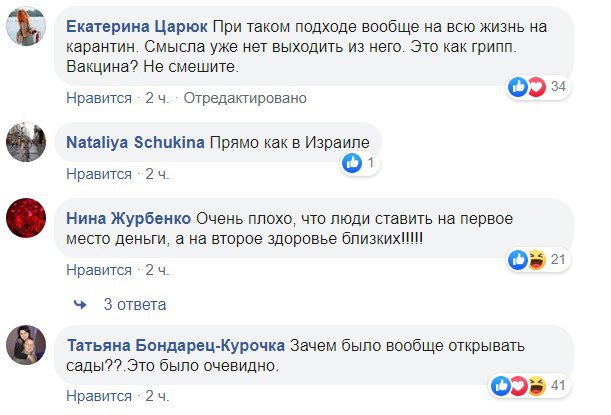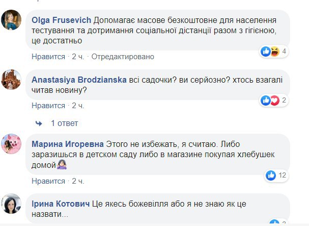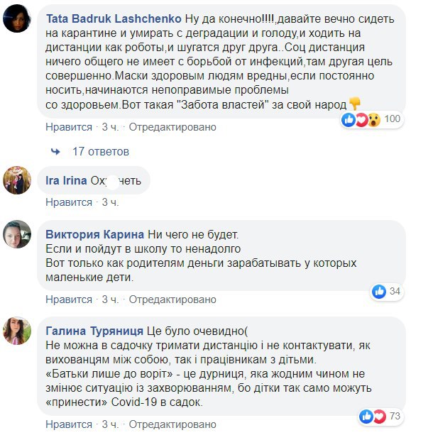 Батьки дітей дуже занепокоїлися через таку інформацію, про що написали в Facebook-групі "Батьки SOS". Але деякі також підкреслили, що сидіти довго на карантині також неможливо.