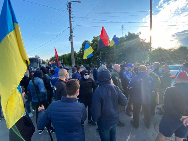 До будинку Тимченко ветерани та волонтери прийшли з фаєрами і димовими шашками.