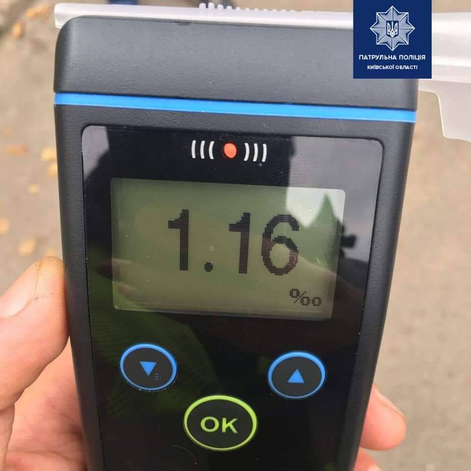 "У присутності двох свідків правоохоронці провели огляд на стан сп'яніння. Результат - 1,16 проміле алкоголю в крові", - повідомили поліцейські.