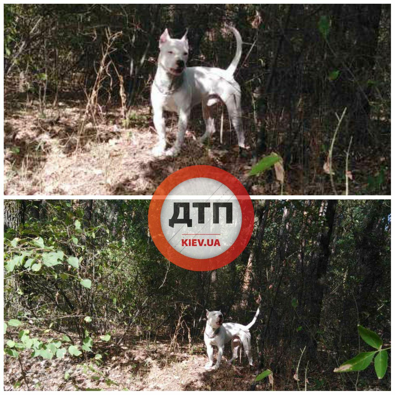 Під Києвом в Володарському районі біля села Логвин в лісі кинули собаку породи стаффордширський тер'єр. Пес вже кілька днів чекає господарів на тому місці, де його залишили.
