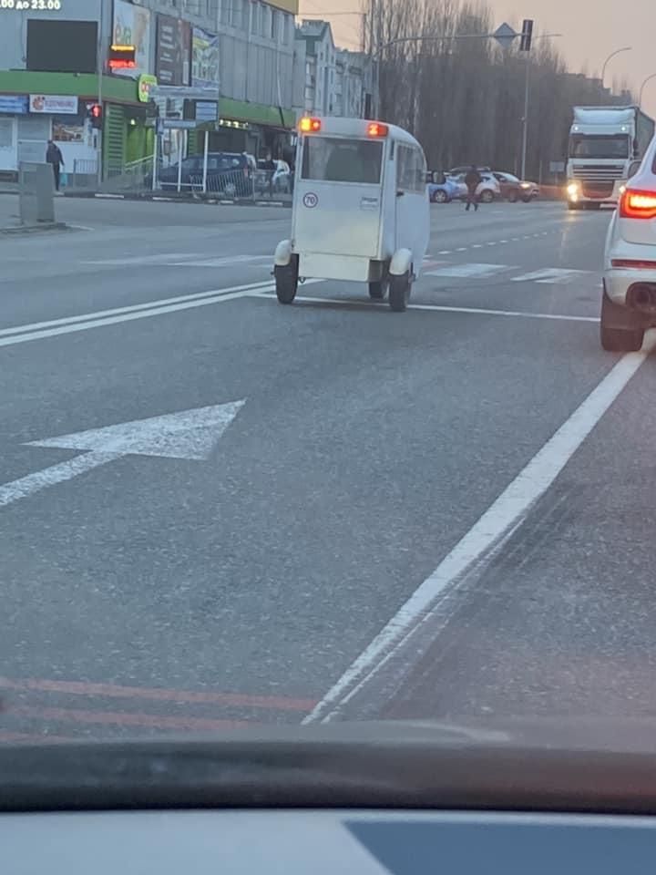 Нещодавно у Бучі помітили автомобіль досить цікавої конструкції. Воно мало лише три колеса та було розроблене на базі старого моторолера.