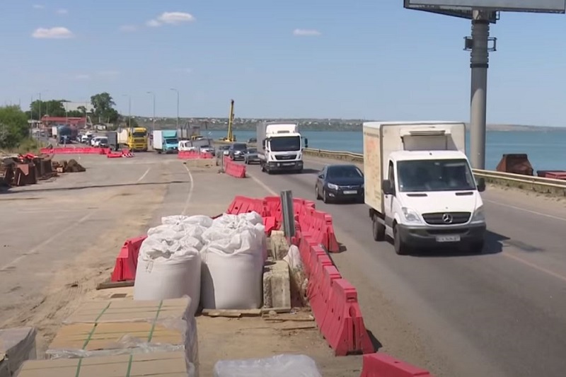 Через ремонт на мосту над Хаджибейським лиманом на трасі Одеса-Київ функціонують тільки дві смуги, і машини шикуються в довжелезні черги, протяжністю по 20 км, і стоять у пробці по 40 хвилин.
