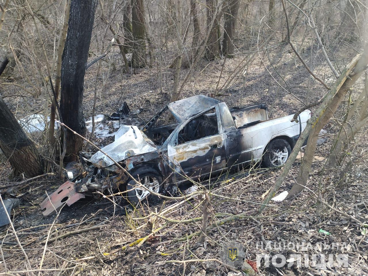 За попередньою інформацією слідства, водій допустив наїзд на двох хлопчиків, віком 6 та 7 років, які на велосипеді рухались по проїзній частині дороги. У результаті аварії водій іномарки з"їхав у кювет, де його автівка загорілась.