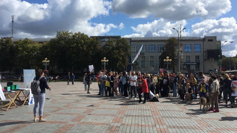 У Вінниці сотні людей вийшли із закликами зупинити знущання над тваринами. Вони зібралися на Європейській площі, після чого перемістилися до арки, що в Центральному парку імені Леонтовича.