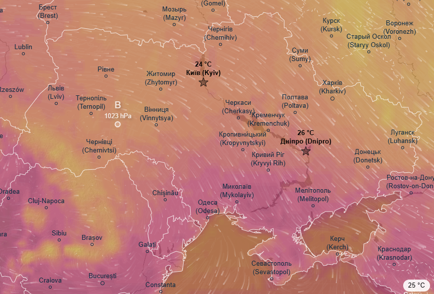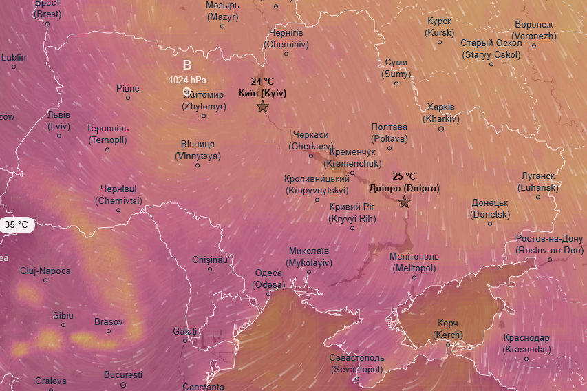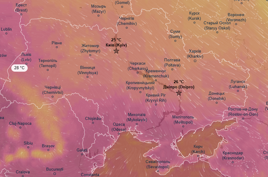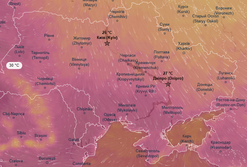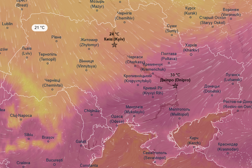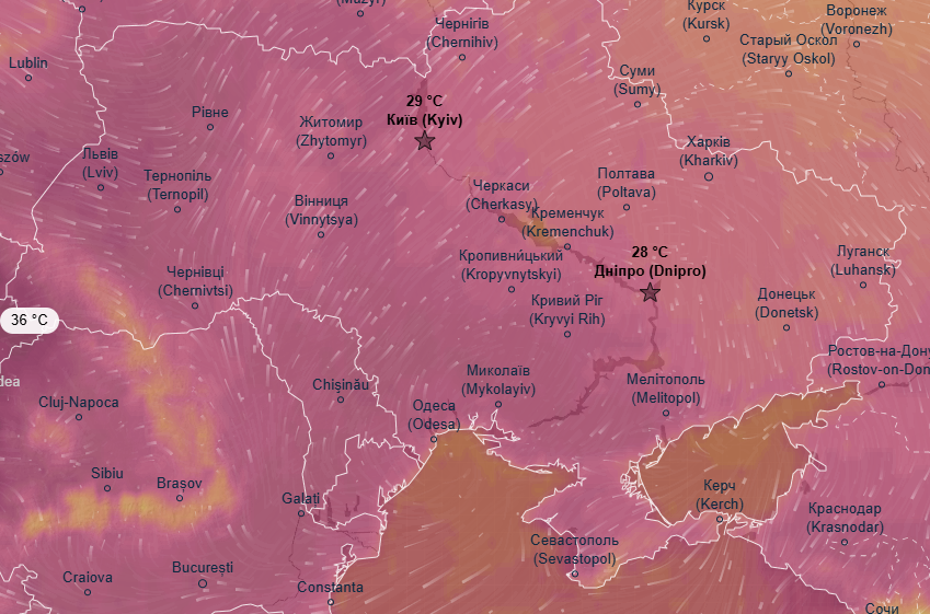 У неділю, 17 серпня, частину країни накриє різке похолодання, яке принесе дощовий фронт з заходу. Вдень спека ще збережеться в південних та східних областях України, а от на решті території денний максимум складе лише +21 градус. До кінця доби похолодає ще сильніше – до +14...+18 градусів, а осередки тепла збережуться лише на Запоріжжі, Донеччині, в Одеській та Миколаївській областях.