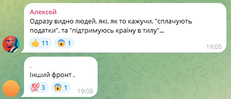 У коментарях користувачі іронізують, що одразу видно людей, які "сплачують податки" та "підтримуюсь країну в тилу".