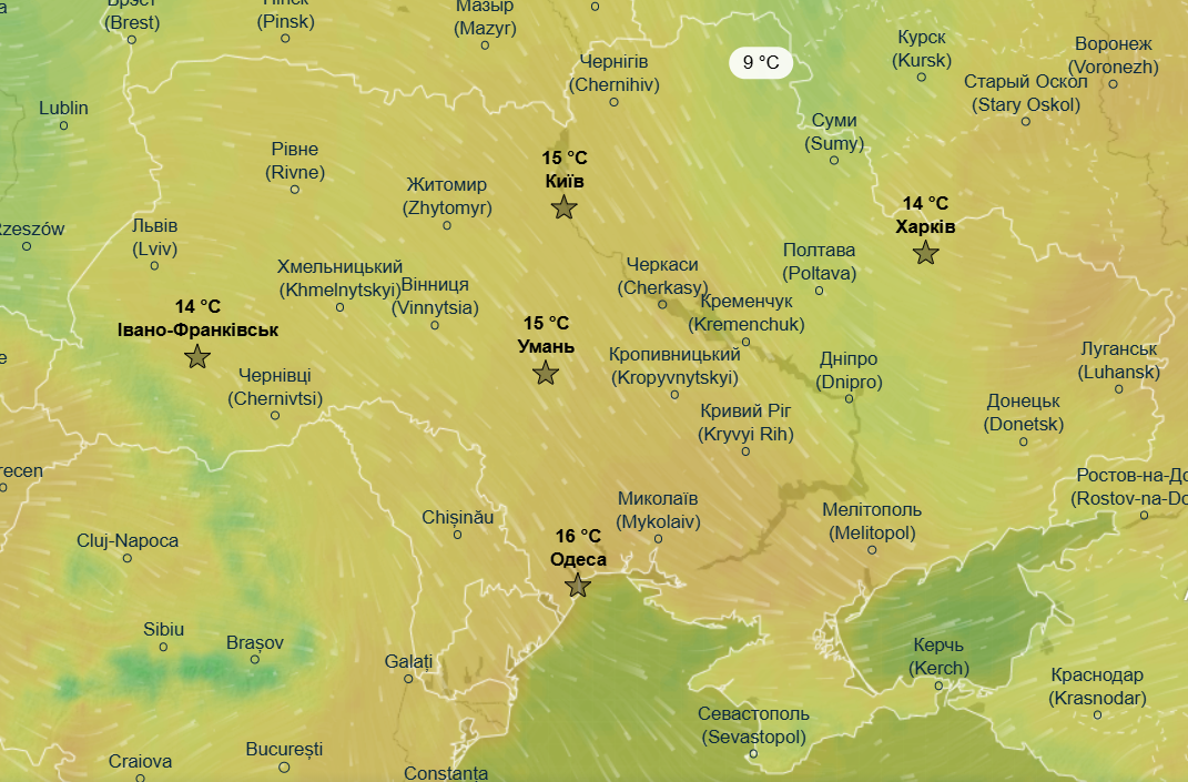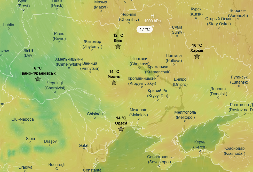 Прохолодні атмосферні фронти також принесуть похолодання на Сумщину та Харківщину, де денний максимум складе +8...+9 °С.