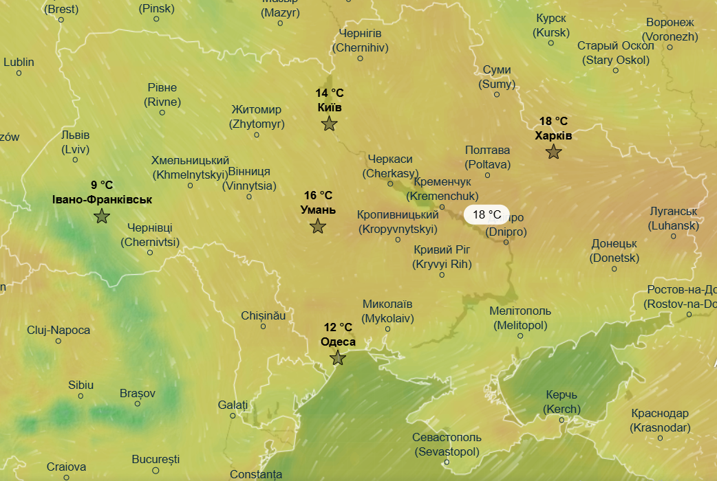 По-справжньому весняне тепло прийде в південні та східні області України, де очікуються майже літні +18 °С.