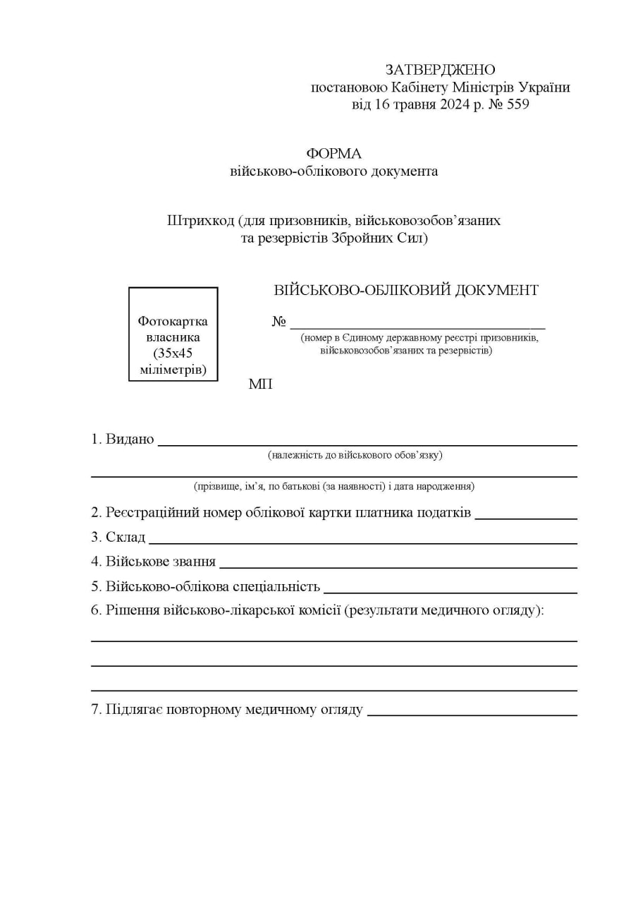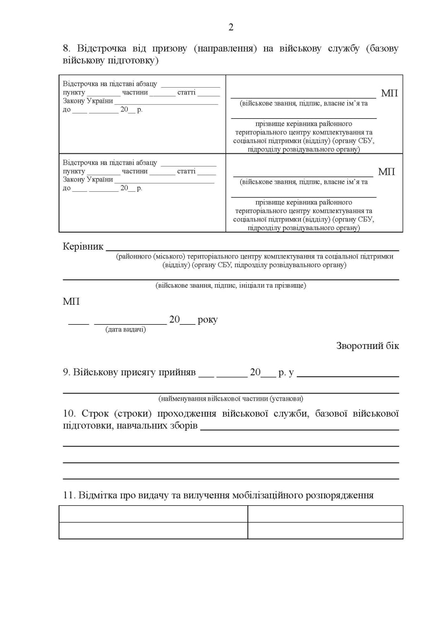 Відповідно до нового порядку військово-обліковий документ є документом, що визначає належність його власника до виконання військового обов"язку, який оформляється та видається громадянину України, який є призовником, військовозобов"язаним або резервістом, у тому числі якщо він був виключений з військового обліку призовників.