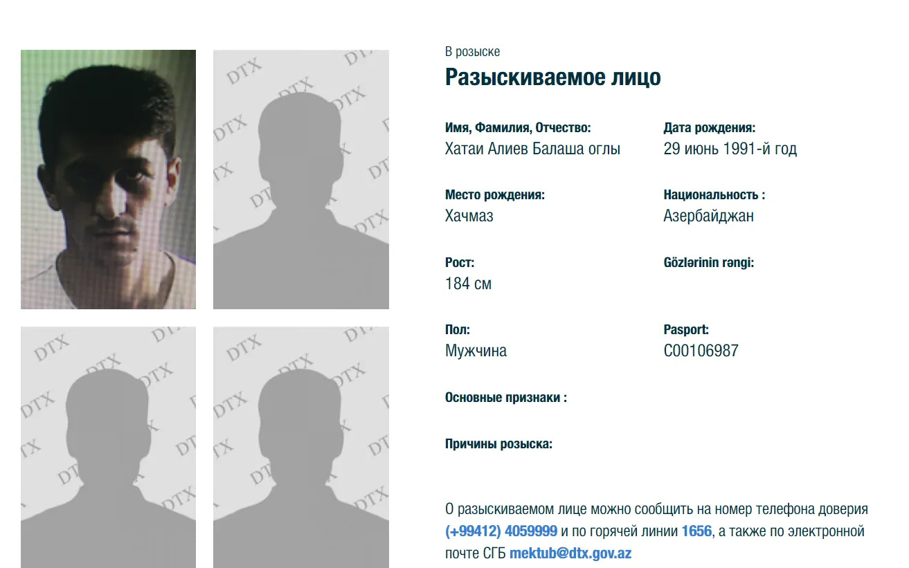 Він є громадянином Азербайджану і за інформацією Служби безпеки цієї країни, Алієв перебуває в розшуку.