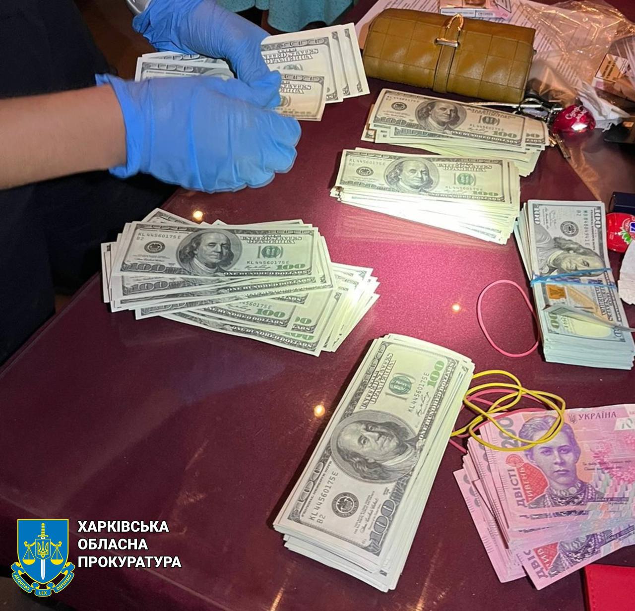 Громадянка Харкова отримала підозру за фактом одержання хабаря за вплив на ухвалення рішення особою, уповноваженою на виконання функцій держави, поєднаного з вимаганням (ч. 3 ст. 369-2 ККУ).