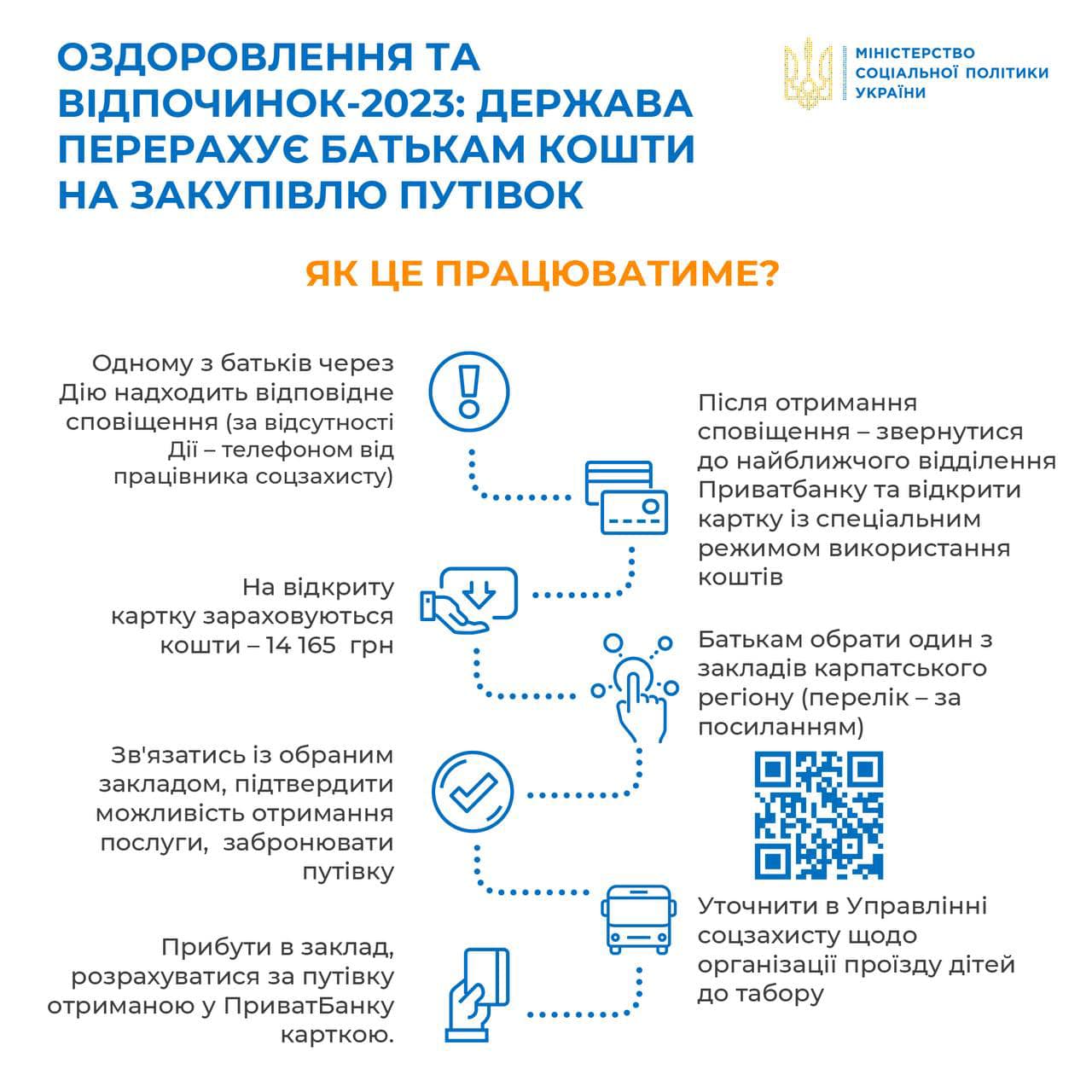 Батьки можуть самостійно перевірити себе у переліку отримувачів коштів, а також обрати та забронювати путівку до закладу оздоровлення та відпочинку.