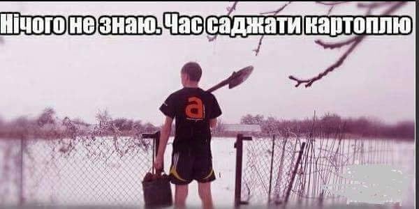 "Нічого не знаю. Час саджати картоплю", - написано на картинці.