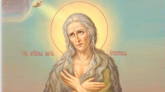 Марія жила у середині V століття, у Єгипті. Коли їй було 12, вона вирушила до Олександрії і там стала блудницею. Так і жила до 30 років, поки випадково з групою прочан не потрапила до Єрусалиму, до храму Гробу Господнього. Спочатку Марія не змогла зайти до церкви – якась сила не пускала її. Тоді дівчина почала молитися та плакати перед іконою Богородиці перед храмом. Лише після цього вона змогла ввійти всередину і там почула голос: "Якщо перейдеш за Йордан, то здобудеш блаженний спокій".