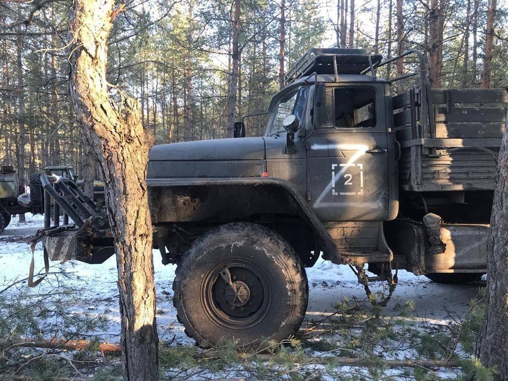 Позначення "Z" на дверях означає, що "Урал" належав східним силам окупантської армії. Однак, зараз буксирувальник працюватиме на 128 бригаду, тягатиме, зокрема, підбиту й пошкоджену ворожу техніку.