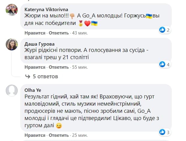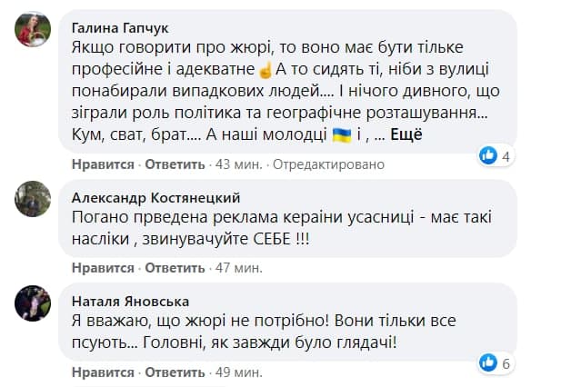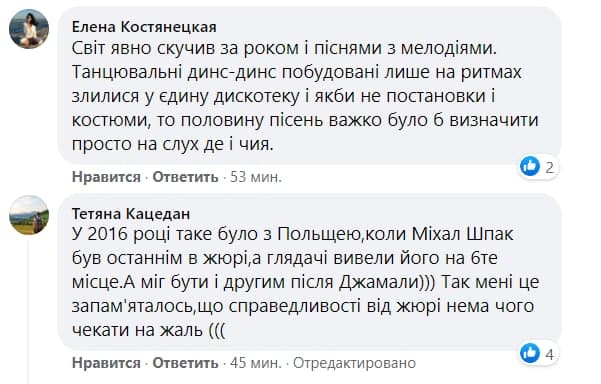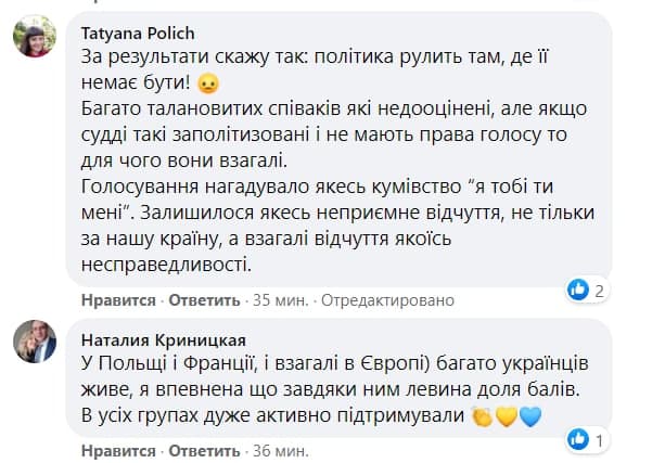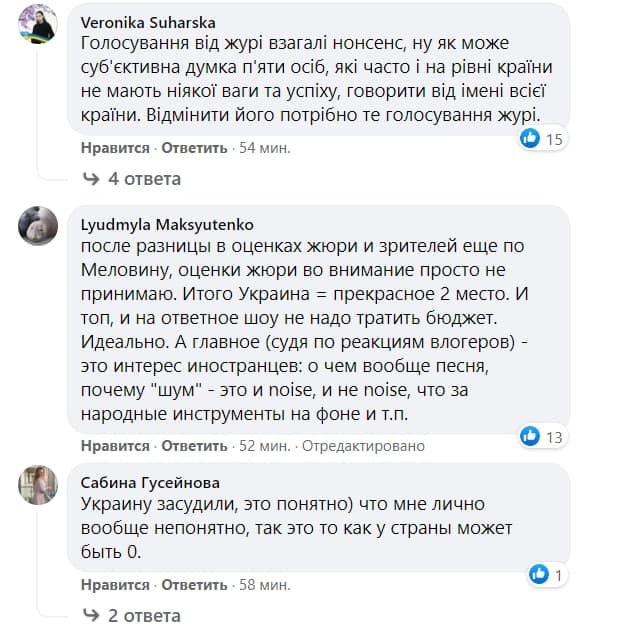 Українці розчаровані несправедливими результатами України і величезним розривом між думкою журі і слухачів. Вони пишуть, що політика рулить там, де її не повинно було б бути, в результаті чого багато талановитих співаків недооцінені. Загальна думка - Україна засудили.