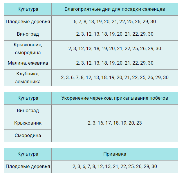 Сприятливі дні в червні 2021 року для посадки саджанців, живцювання і щеплень: