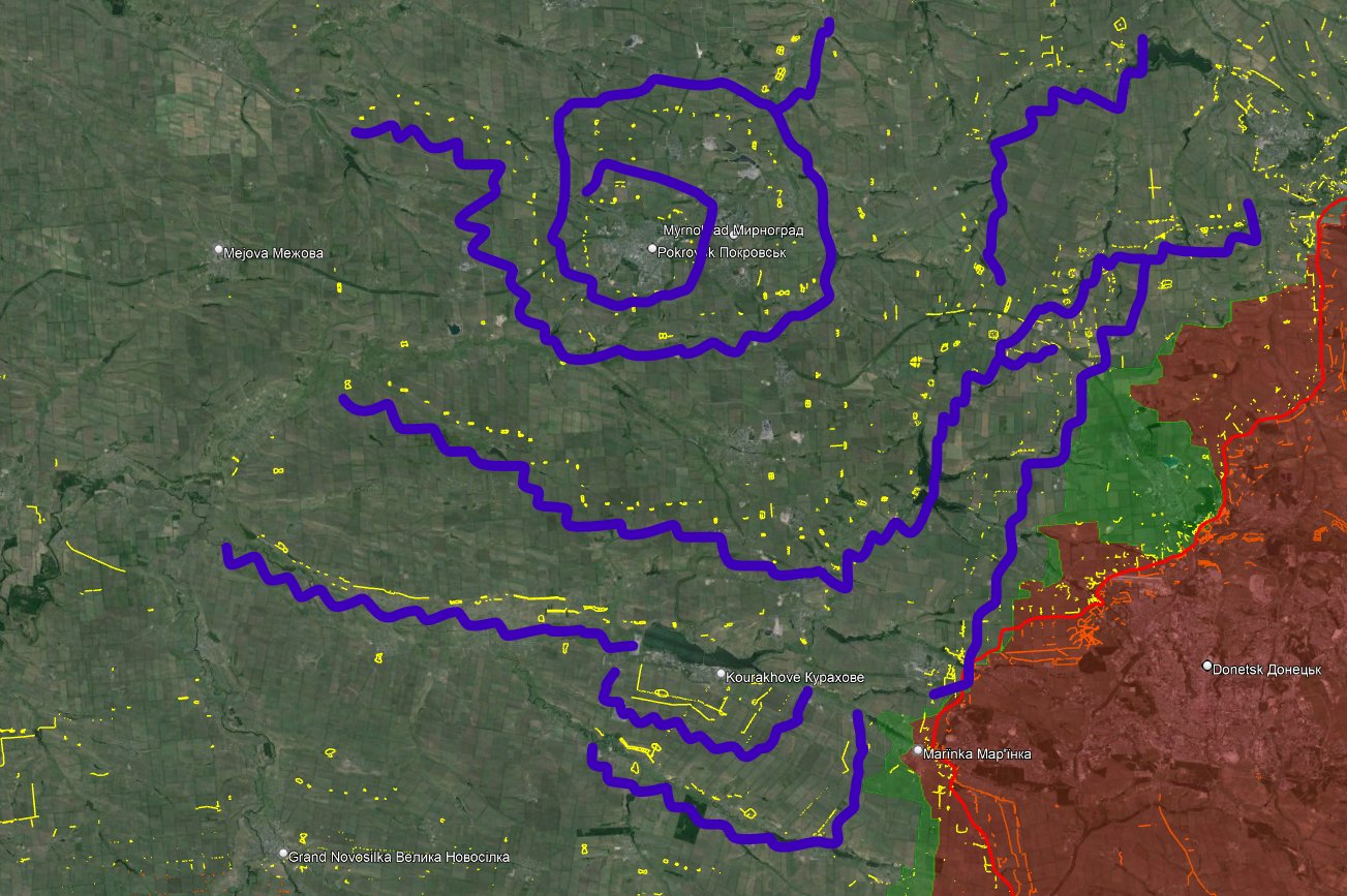 За словами аналітика, після наступу росіян у Новомихайлівці ЗСУ почали рити нові оборонні споруди на схід та південь від Курахового, включаючи великий протитанковий рів.