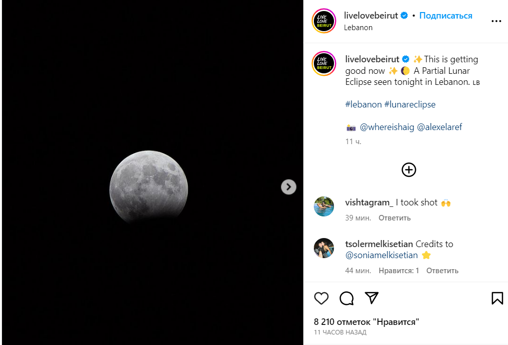 "Багато дітей прийшло подивитися на цей захід. Ми дуже схвильовані, і ніхто не розмовляє телефоном, це неймовірно, просто всі просто дивляться на Місяць. У нас внизу встановлено близько восьми телескопів, і публіка всюди спостерігає за цими телескопами і фотографує", - цитує видання Хадіджі Ахмад, яка працює менеджером астрономічної групи в ОАЕ.