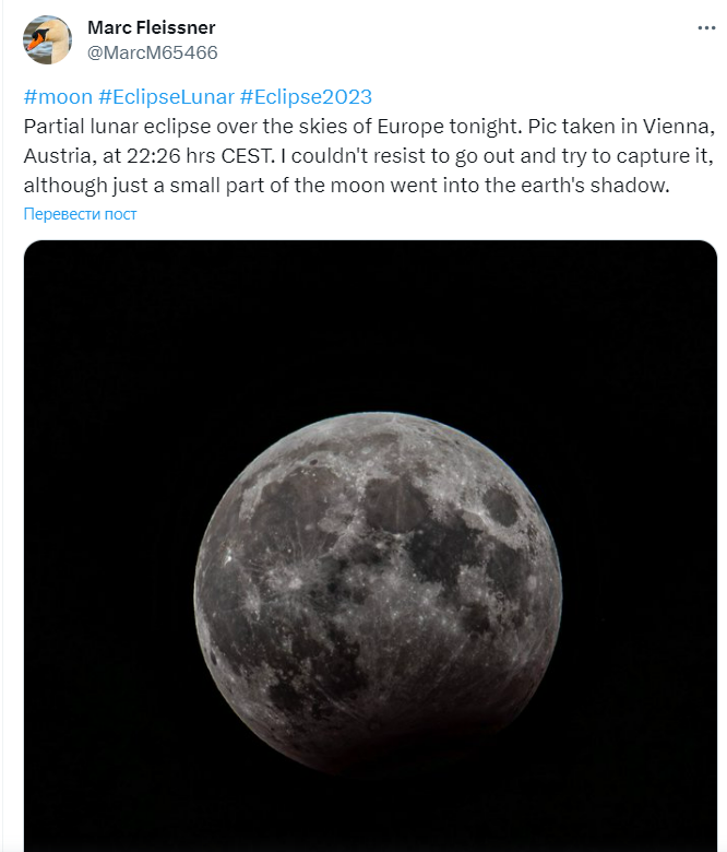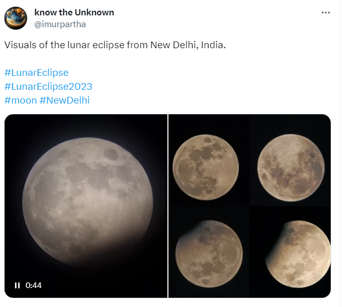 Місячне затемнення могли бачити лише в одній частині Землі - в деяких країнах Європи, Азії, Африки, ряді штатів США та Австралії. Для зручності стрімінгові платформи запустили онлайн-трансляцію, щоб кожен бажаючий міг насолодитися останнім у 2023 році місячним затемненням.