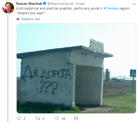 "Філософське і практичне питання, особливо гостре в Черкаській області: "Де дорога?", - написав посол.