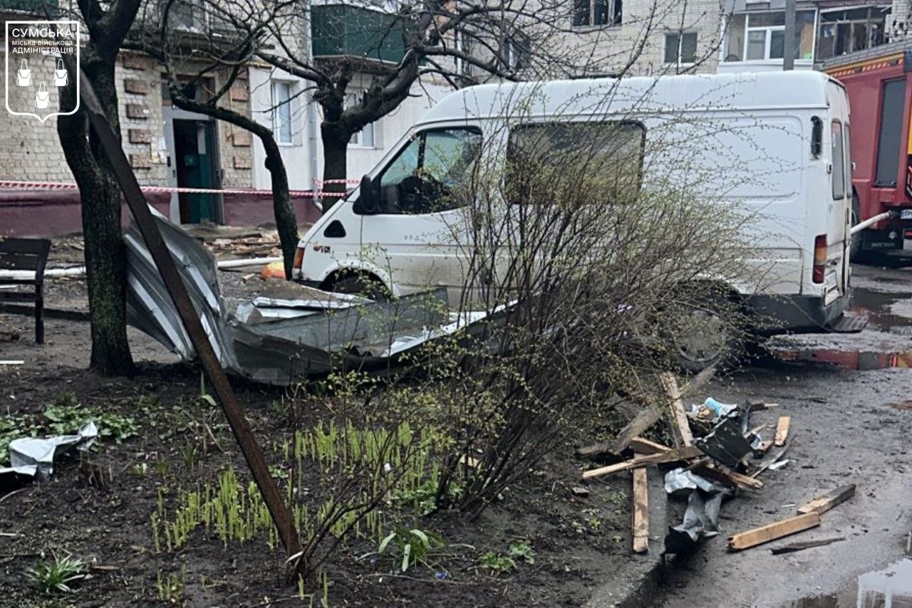 У результаті російської дронової атаки по Сумах 10 квітня постраждало, окрім пʼятиповерхівки, куди потрапив удар безпілотника, ще кілька будинків та навчальний заклад для дошкільнят.