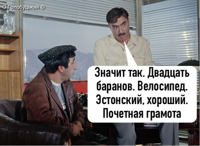 На одній з картинок зображена сцена з радянського фільму, а на інший - з французького. Також на них написані нібито репліки героїв.