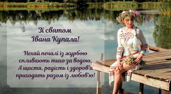 Вітаю зі святом Івана Купала! Нехай в цей день разом з водою підуть усі неприємності та печалі, нехай життя наповниться радістю, любов'ю, міцним здоров'ям і нехай удача завжди буде на твоєму боці!