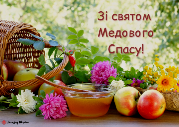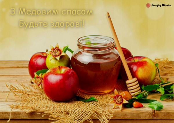 Вітаю тебе з Першим Спасом! Бажаю, щоб кожен твій день, подібно до дня маленької бджоли, був наповнений корисною працею. Щоб твій дім був повен, як соти. Щоб життя було солодким, як мед, і освячене Божою Благодаттю, як і Дари в цей день.
