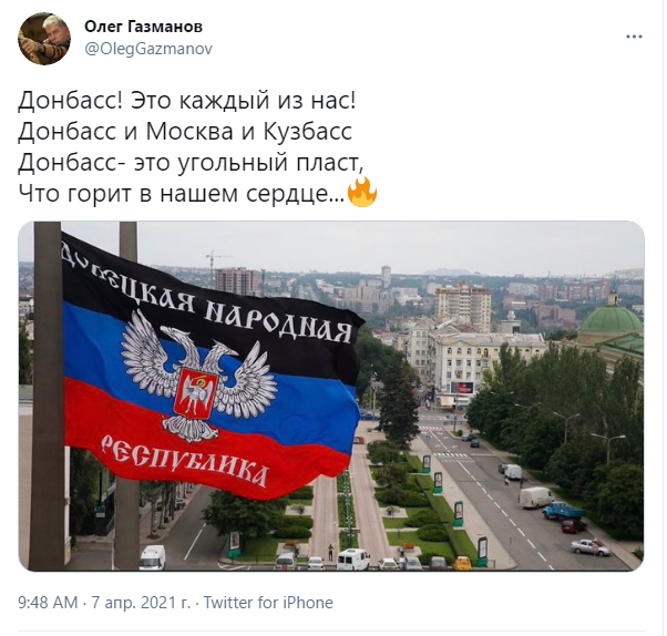 Російський співак, прихильник бойовиків ДНР Олег Газманов написав вірш, присвячений окупованому Донбасу.