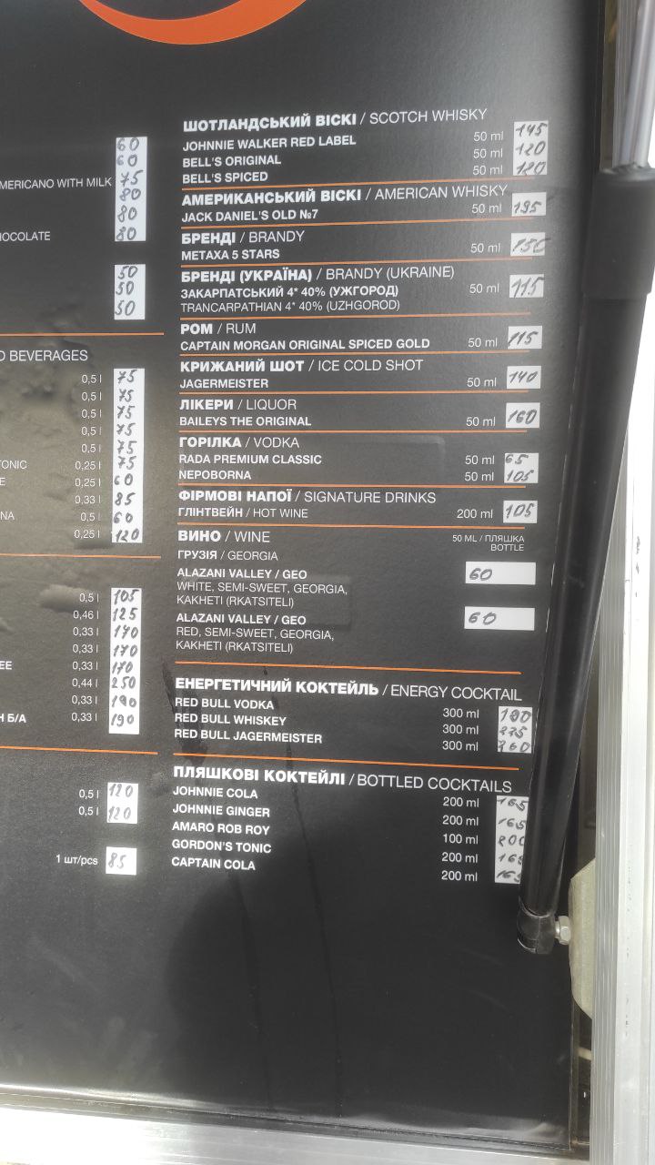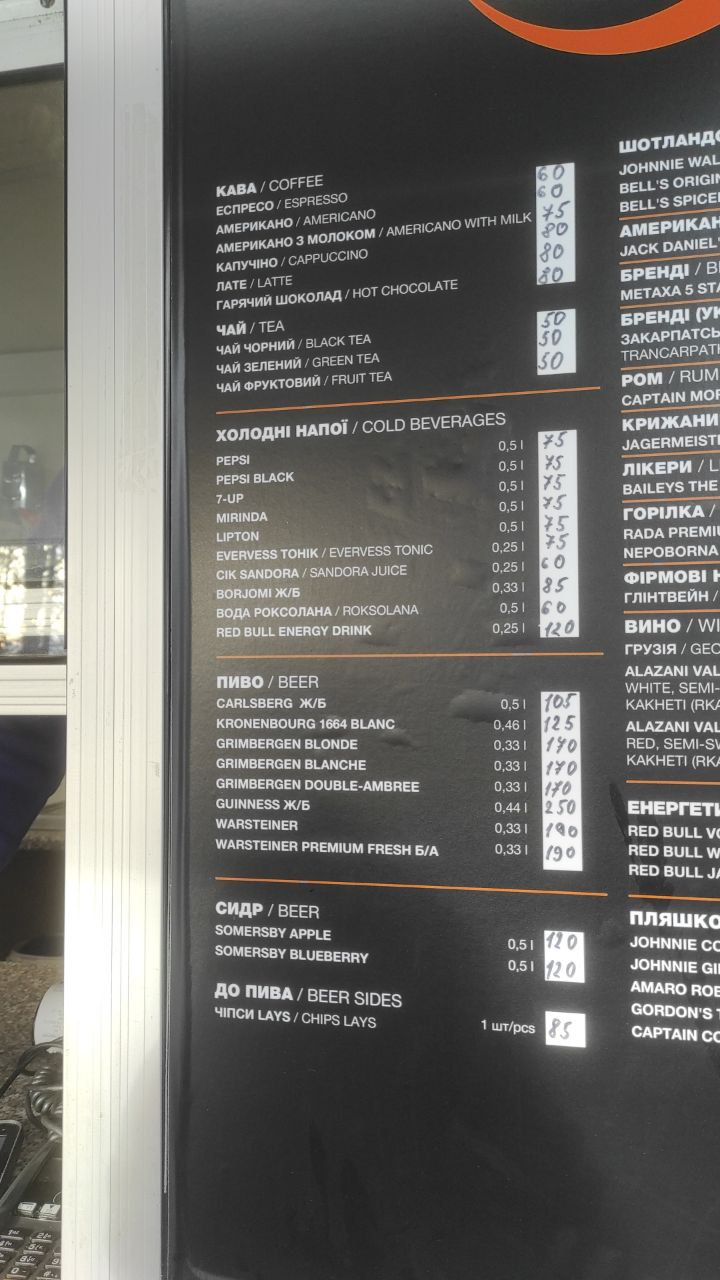 Щодо цін, то паркування біля сьомої траси обійдеться вам у 150 грн, а ось кавові напої та чаї в межах 50-60 грн за горнятко.
