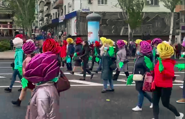 У вівторок, 11 травня, у тимчасово окупованому Донецьку влаштували ходу на честь "дня республіки", на яку звозили працівників бюджетних організацій зі всієї непідконтрольної Україні території області.