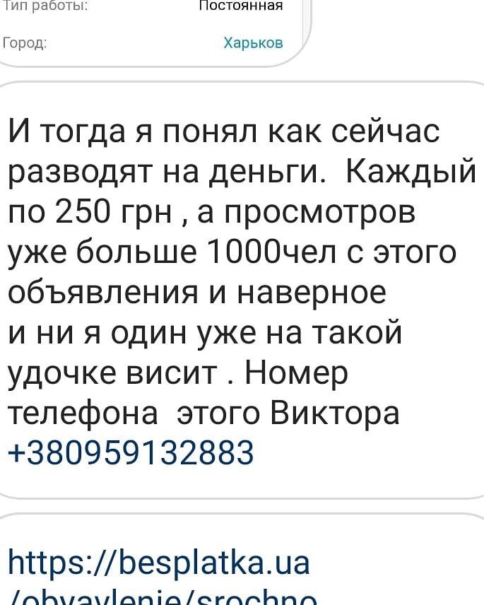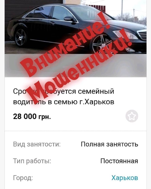 Оголошення знайшов житель Харкова на сайті "Бесплатка". Там виставили вакансію про роботу сімейним водієм. Українець відгукнувся на пропозицію і ледь не став жертвою шахраїв, зателефонувавши за оголошенням.