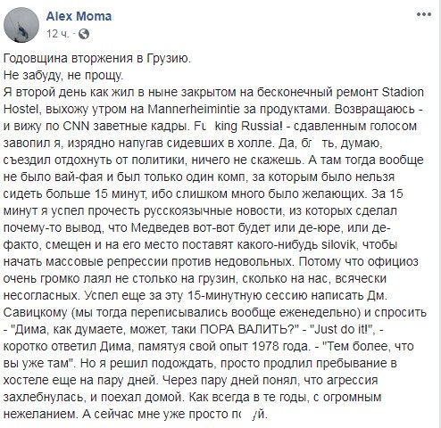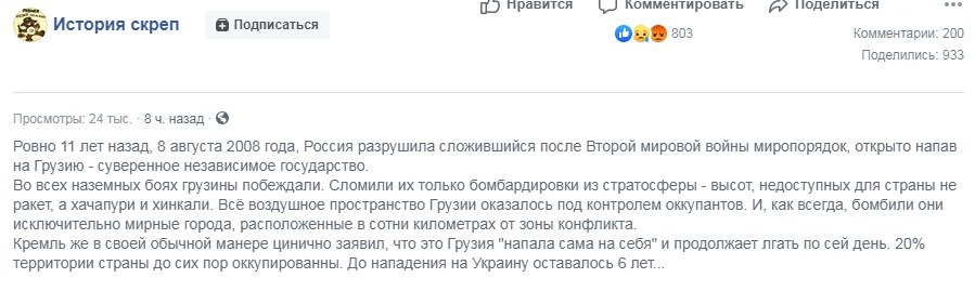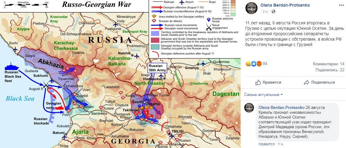 8 серпня виконується 11 років із дня вторгнення російських військ до Грузії, багато користувачів соцмереж поділилися спогадами про ті події, а також фото та відеозаписами тих днів.