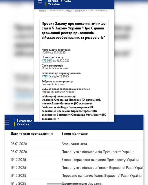 Йдеться про підписання закону №14238, що передбачає надання центрам рекрутингу ЗСУ право вести Єдиний державний реєстр призовників, військовозобов’язаних та резервістів ("Оберіг").