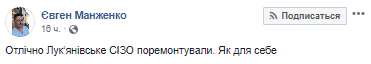 "Дуже добре Лук'янівське СІЗО відремонтували. Як для себе", - підписав він знімки.