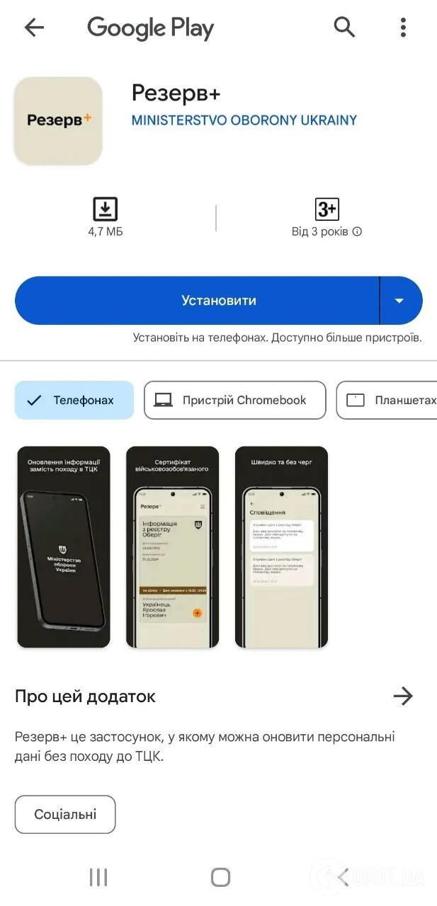"Резерв+" надає можливість оперативного оновлення даних та доступу до інформації у реєстрі "Оберіг". Це зручний спосіб виконання обов"язкової процедури оновлення особистих даних. Після оновлення даних у застосунку ви побачите інформацію з реєстру "Оберіг" щодо себе", – розповіли в Міноборони.