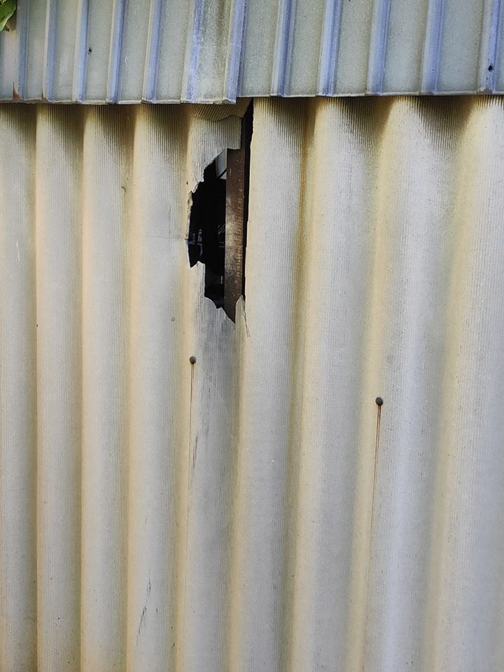 Під час обстеження місця події було виявлено пошкодження елементів прибудинкової території, зокрема шиферної огорожі домогосподарства.