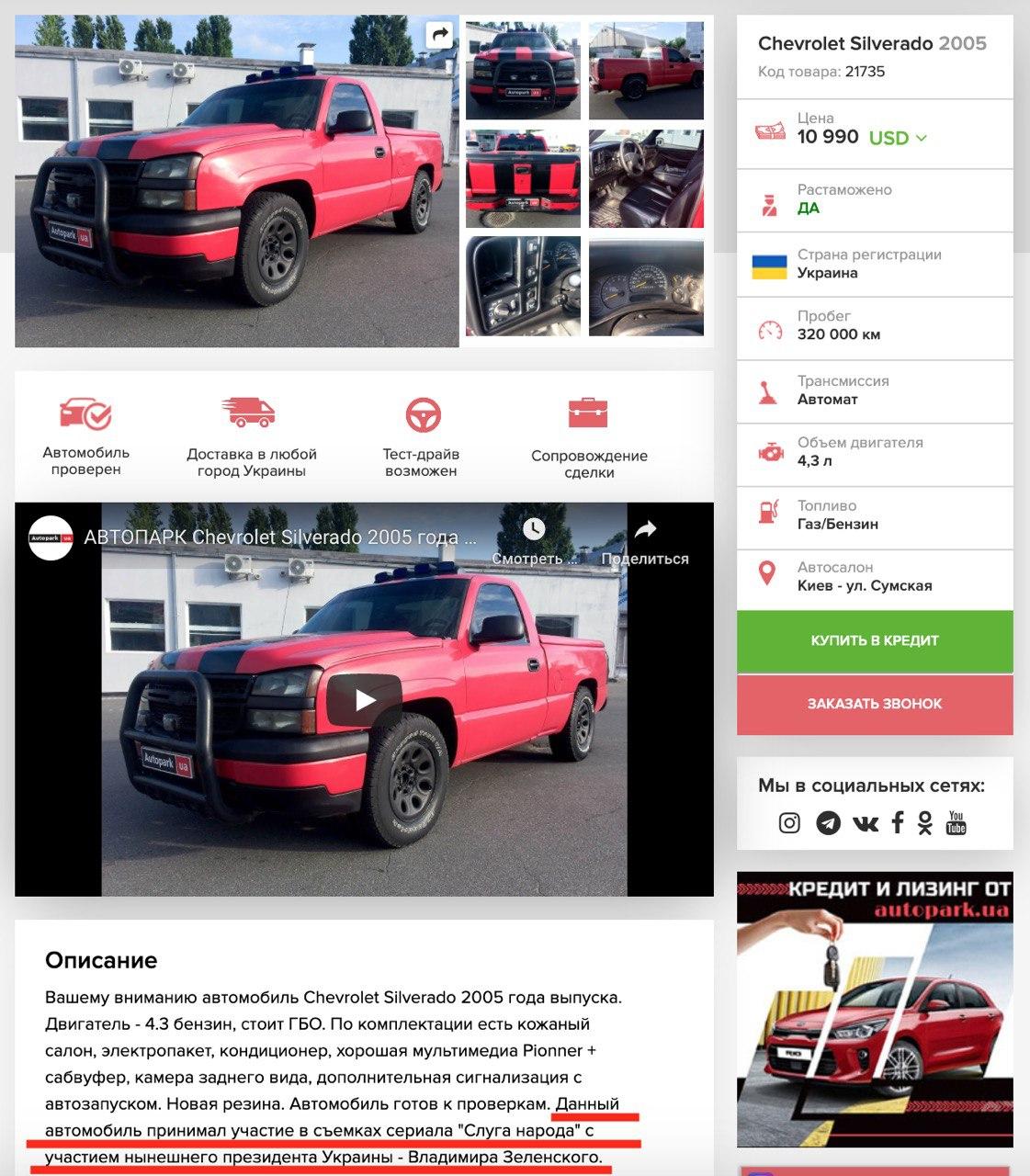 Власник автомобіля, на якому нібито їздив персонаж Володимира Зеленського, Василь Голобородько, тобто сам актор Зеленський, на зйомках серіалу "Слуга народу", продає машину.