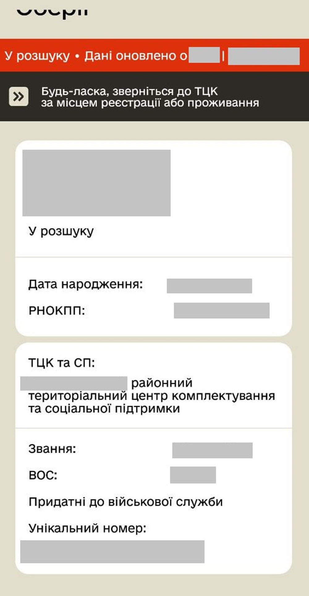 Так, українець, який виключений з військового обліку та має інвалідність дитинства, скаржиться, що у "Резерв+" йому показує дані з бази "Оберіг", що він нібито перебуває в розшуку та є "придатним до військової служби", хоча у квітні цього року чоловік оновив усі дані у ТЦК.