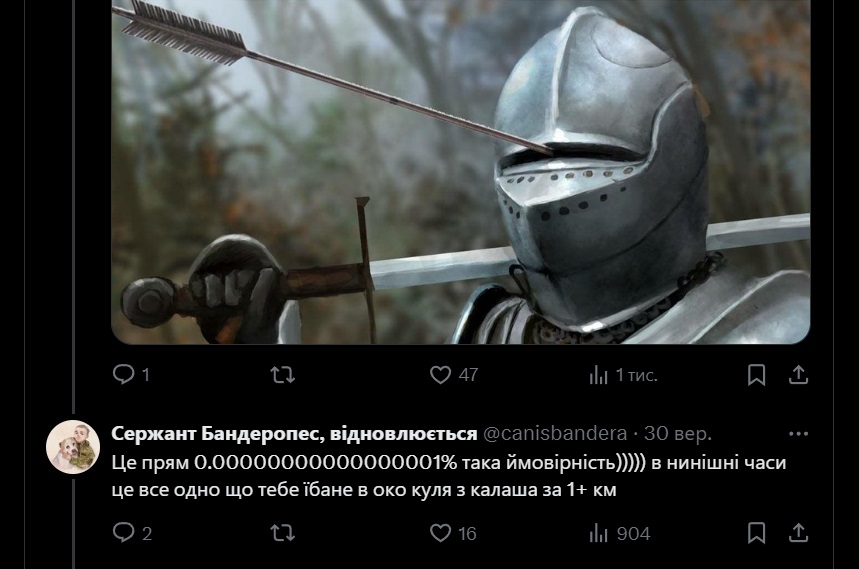 Таку думку висловив у Х військовослужбовець з ніком "Сержант Бандеропес, відновлюється".