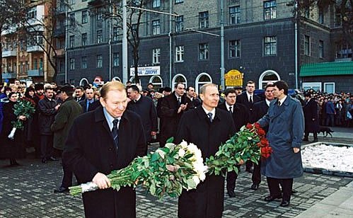 Путін і Кучма покладають квіти до пам'ятника Пушкіну в Дніпрі